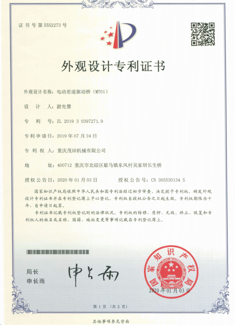 重慶茂田機械有限公司是國家級小巨人企業(yè)、國家高新技術(shù)企業(yè)、重慶市專精特新企業(yè)、重慶市知識產(chǎn)權(quán)優(yōu)勢企業(yè),致力于現(xiàn)代化山地農(nóng)業(yè)機械、各類非標減速電機及其控制系統(tǒng)的研發(fā)、生產(chǎn)、銷售。擁有重慶市市級研發(fā)平臺1個 目前研發(fā)、生產(chǎn)、銷售產(chǎn)品廣泛應用于農(nóng)業(yè)機械、醫(yī)療康復設備、交通代步工具、智能搬運設備、以及機器人動力系統(tǒng)等領(lǐng)域。我們的產(chǎn)品具有完整的自主知識產(chǎn)權(quán),擁有多項專利技術(shù)及“重慶